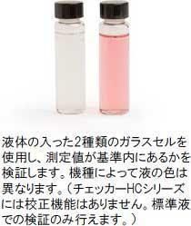 機種によって液の色は異なります。(チェッカーHCシリーズには構成機能がありません。標準液でのみ検証を行えます。)