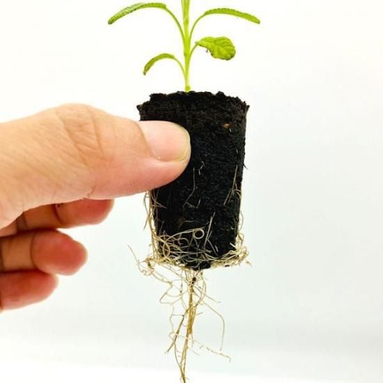 育苗ポットは天然ピートモスとココヤシ素材を使用。根に土が付いていないので洗い流す手間もなく、そのままポットごと植え付けできます。さらにポットごと収穫して、根付きのまま出荷できるので、手間いらずで鮮度も長持ちします。プラスチックごみも出さず、人にも環境にも優しい苗です。(土耕栽培にも使用できます。)